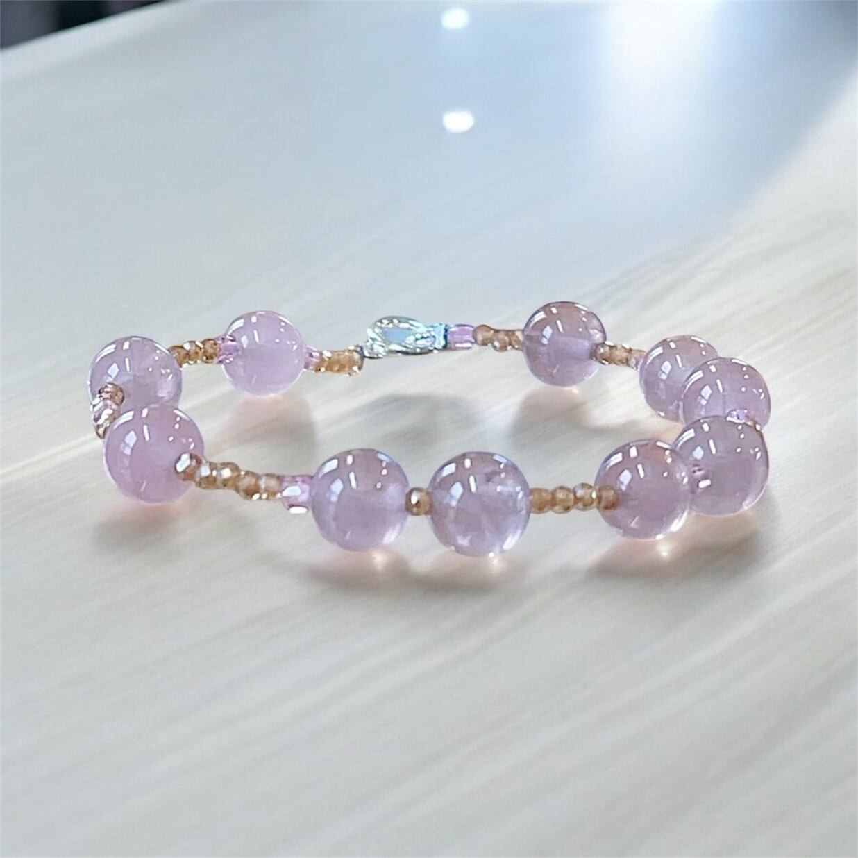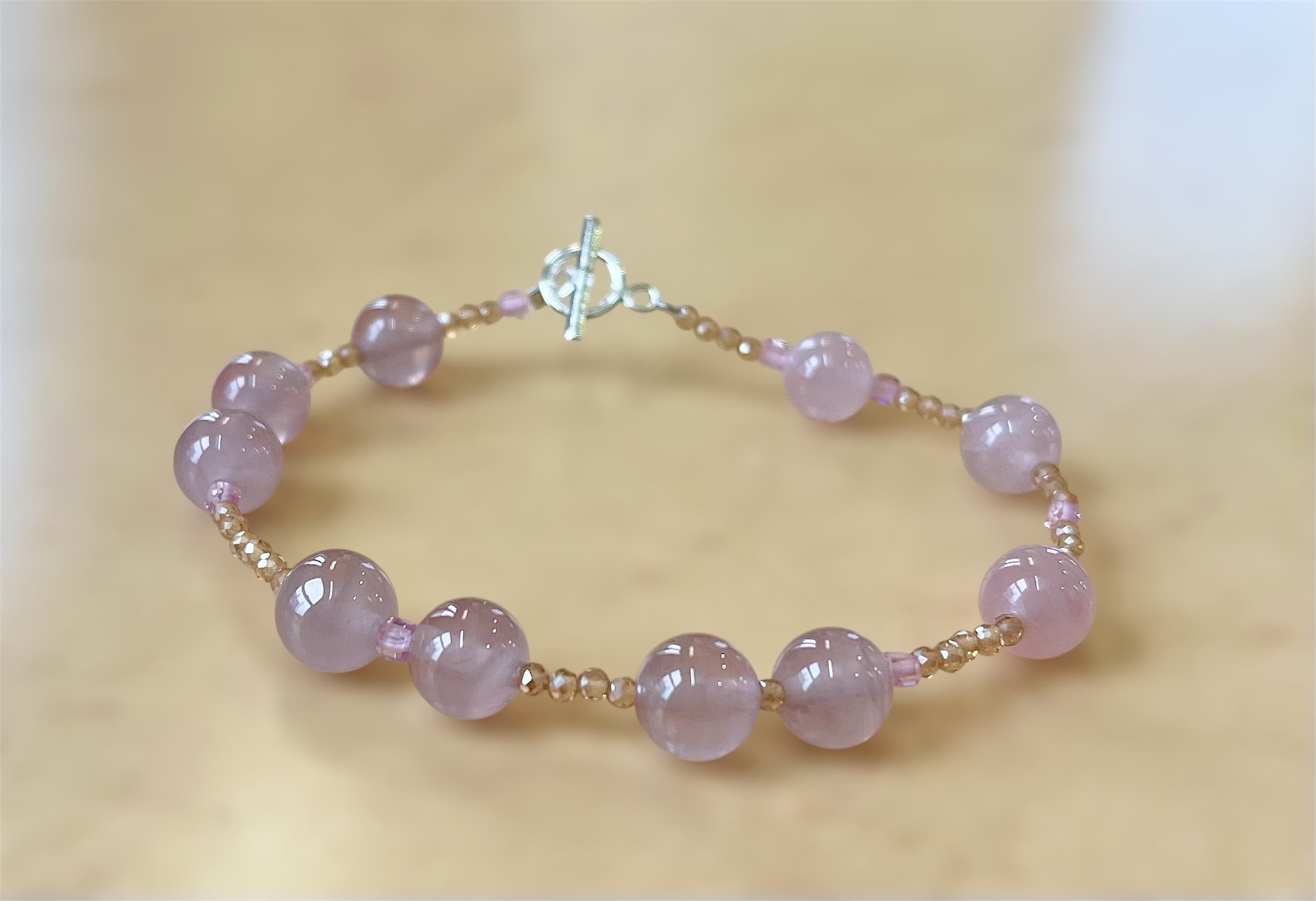 石:天然ローズクォーツ8mm、