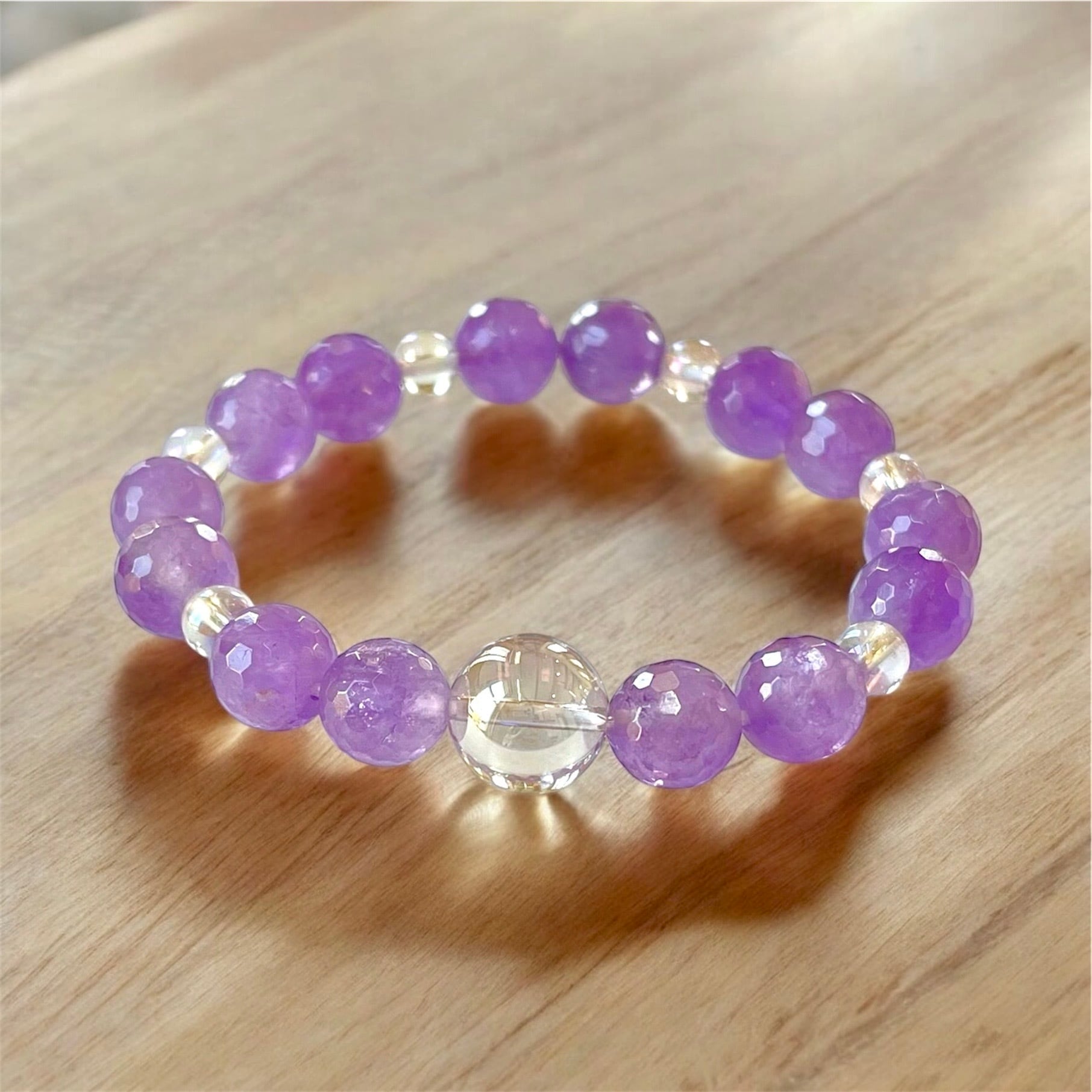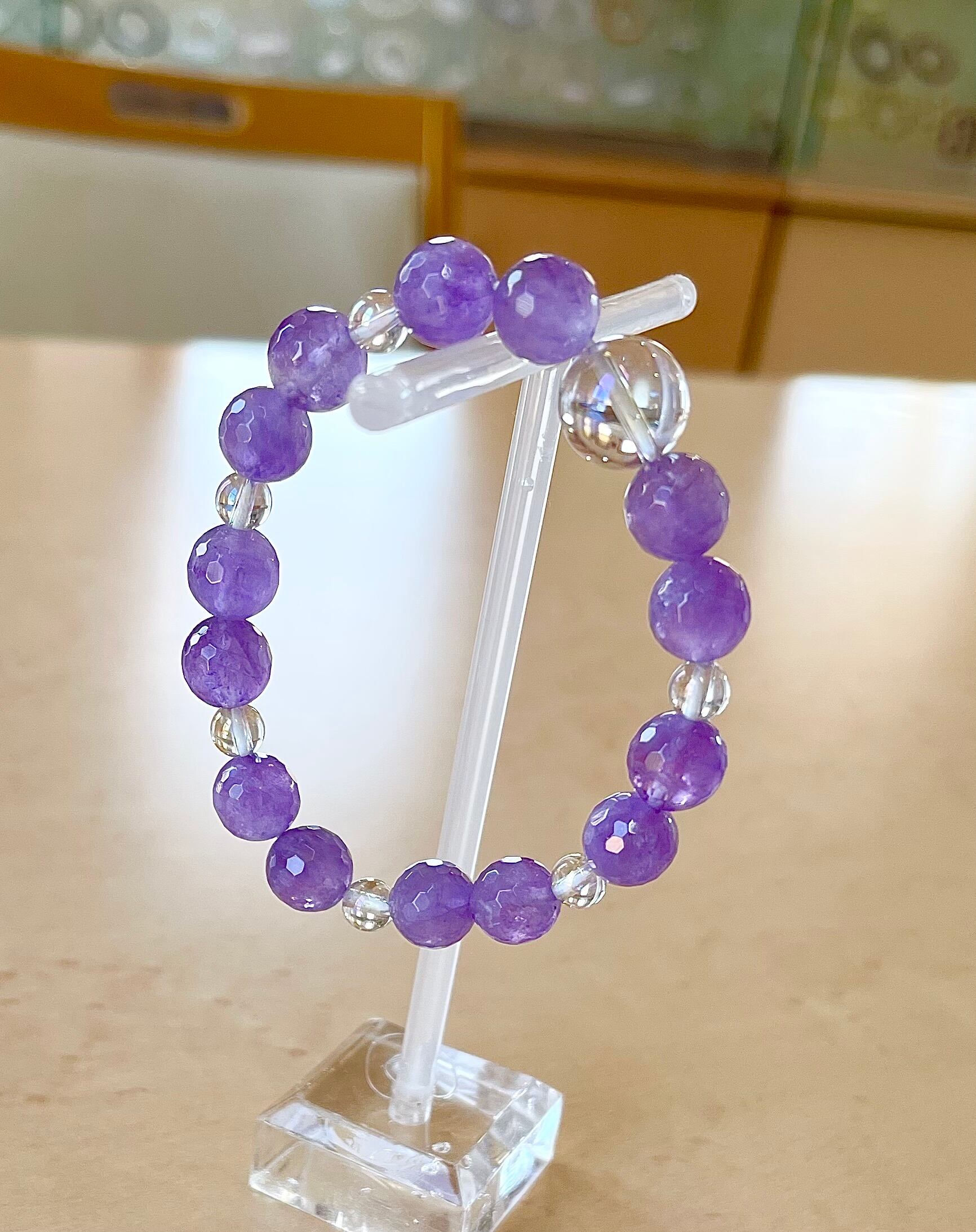 ラベンダーアメジスト、オーラ水晶ブレス