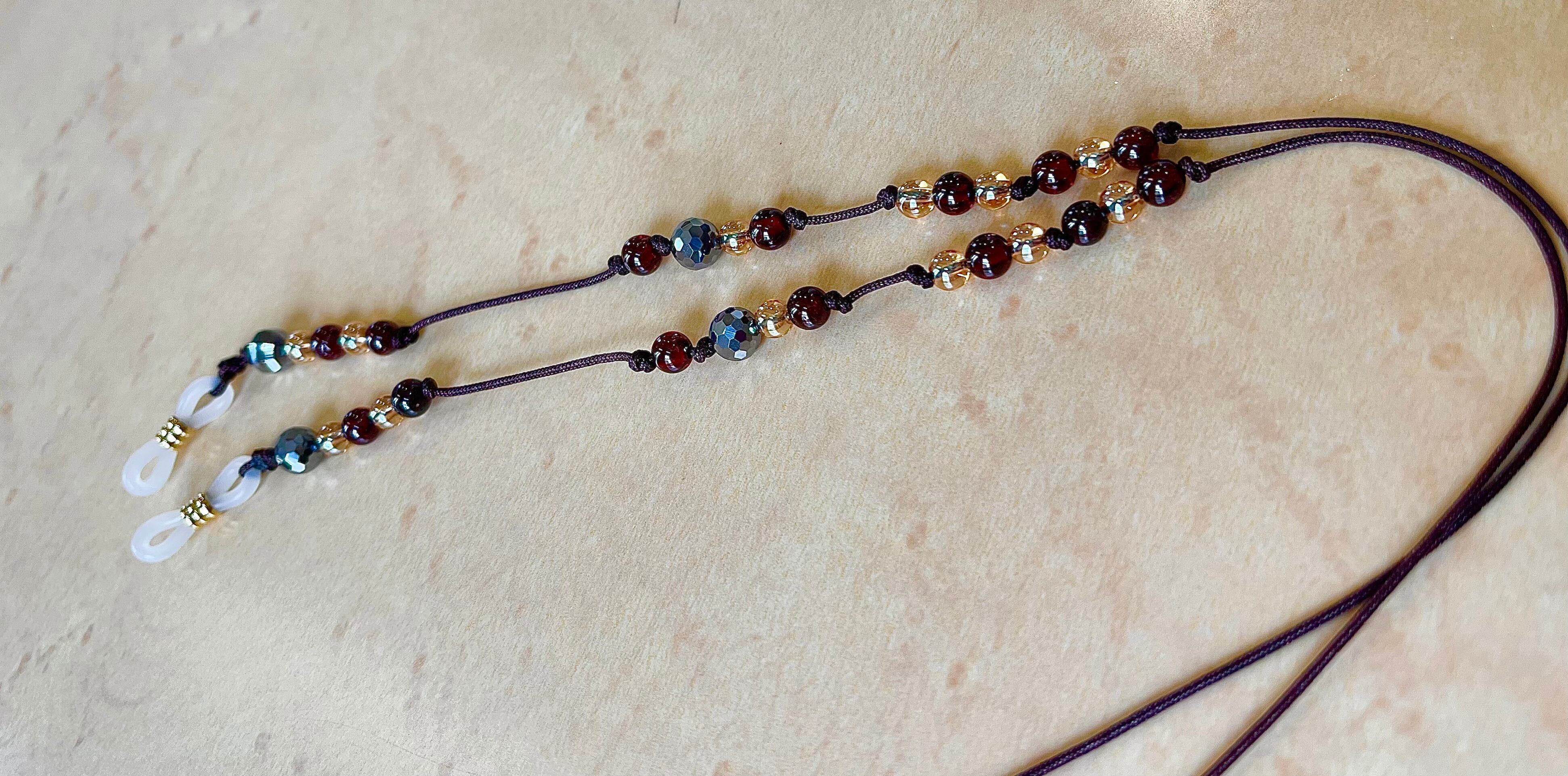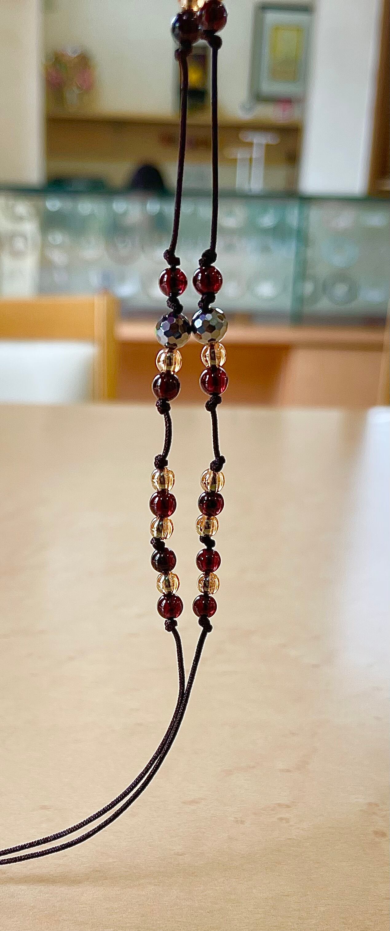 テラヘルツ,ガーネット、ゴールデンオーラ水晶メガネホルダー