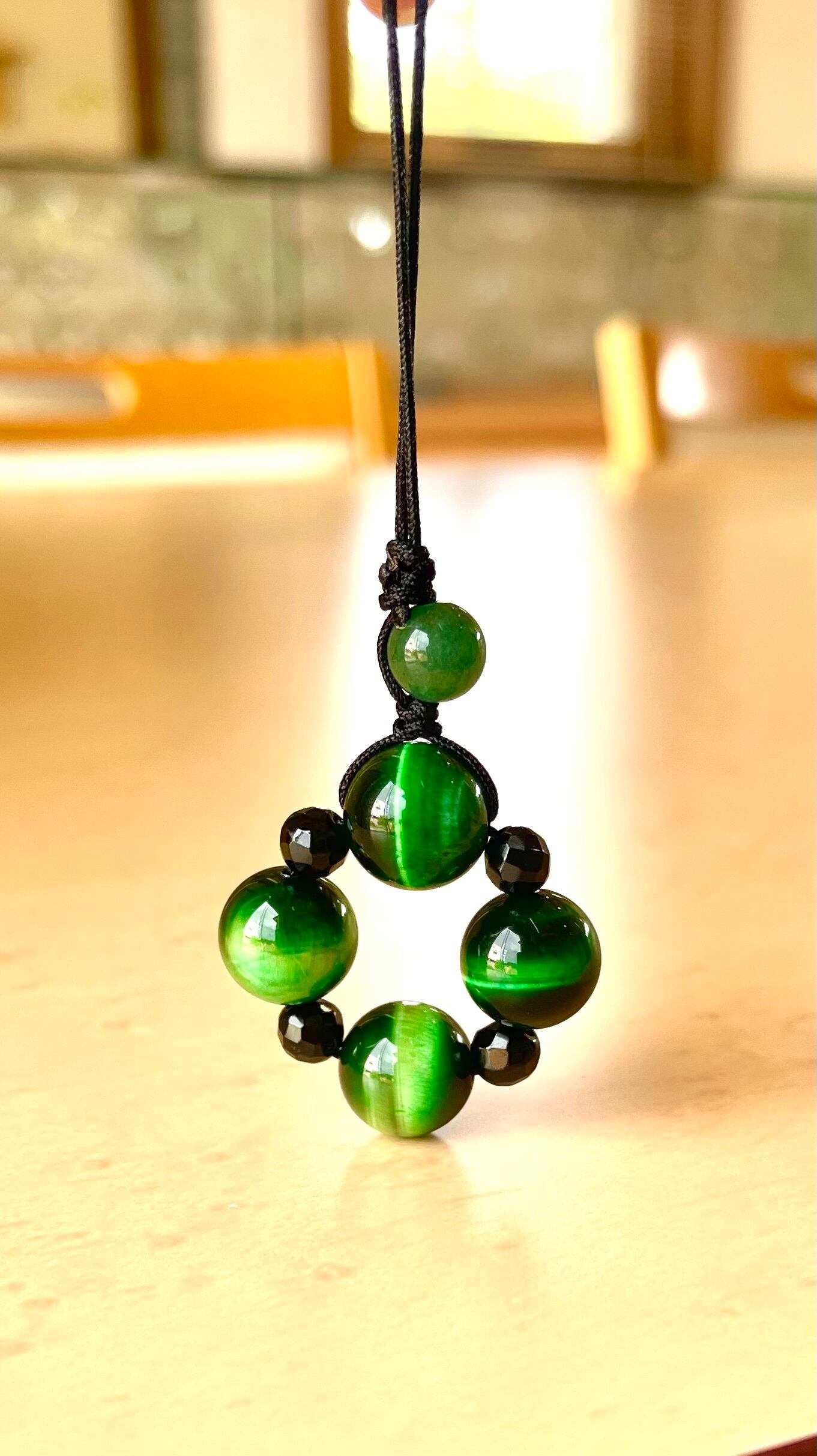 石:グリーンタイガーアイ12mm.ヒスイ8mm