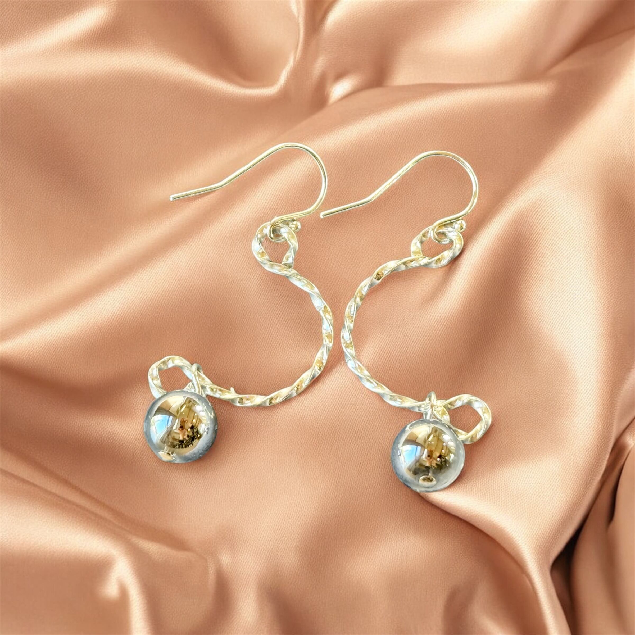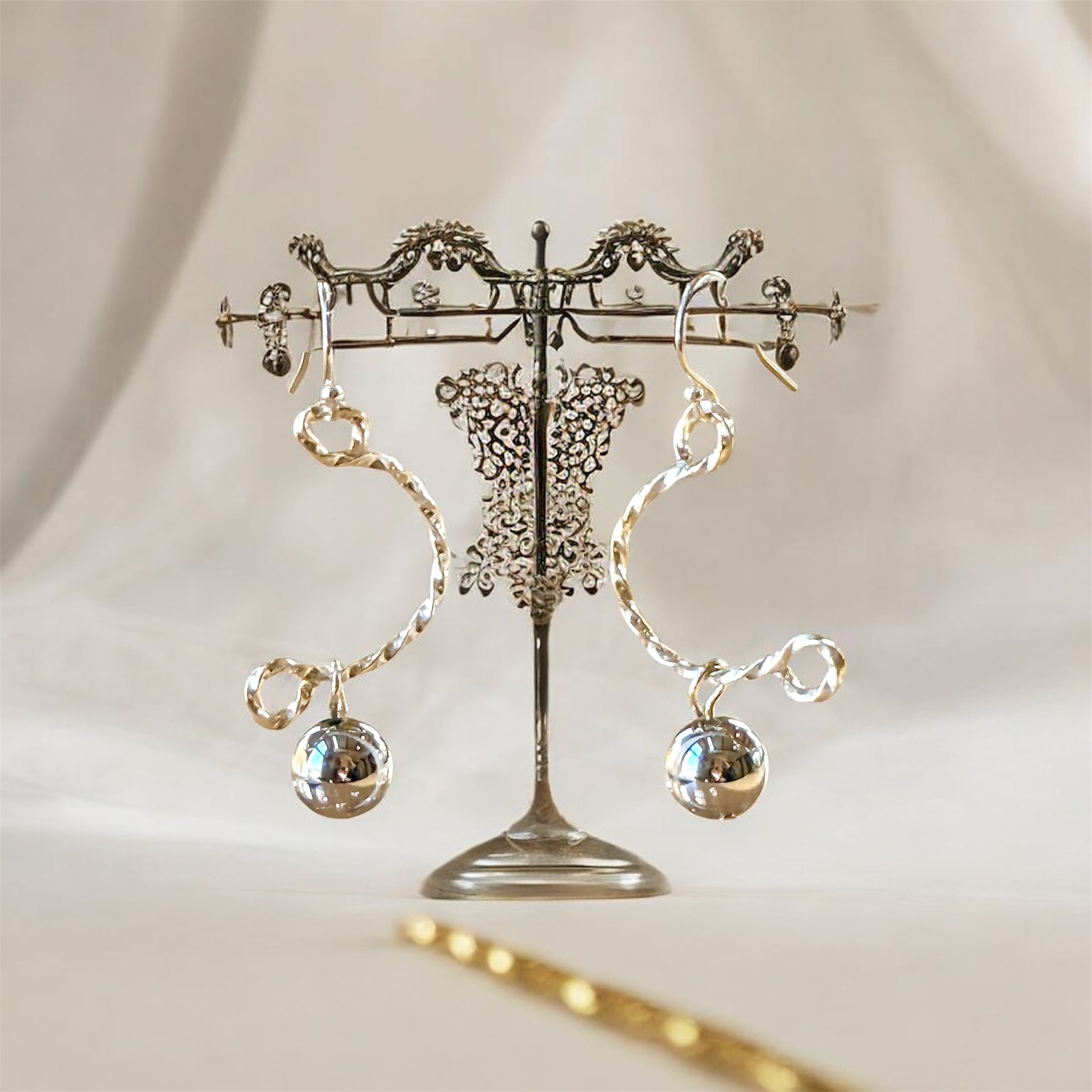 このピアスのデザインは、925シルバーのフックと、ねじれたような優美な曲線を描くモチーフが特徴です。