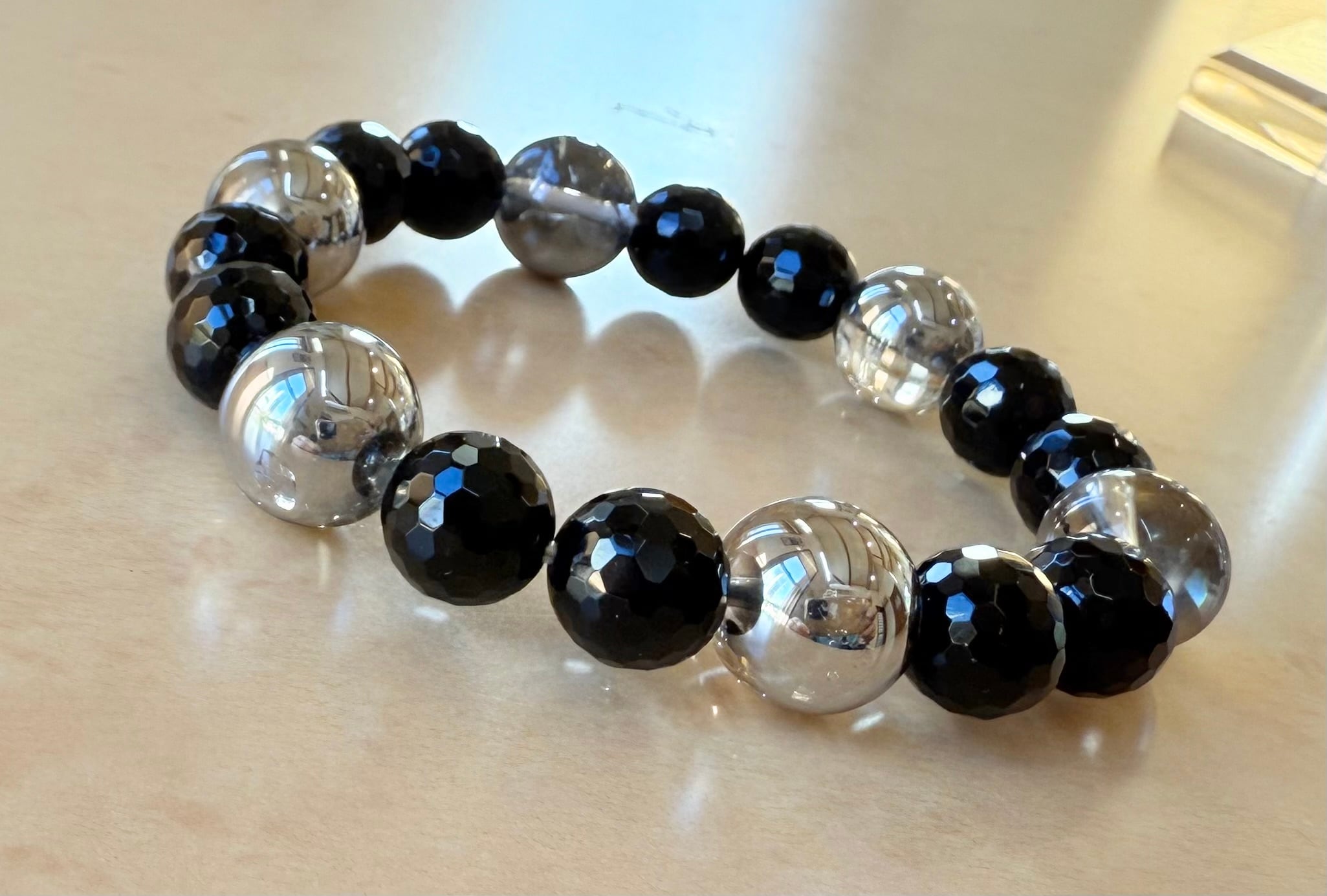 ブラックトルマリンカット8mm × 銀オーラ水晶12mm ブレスレット