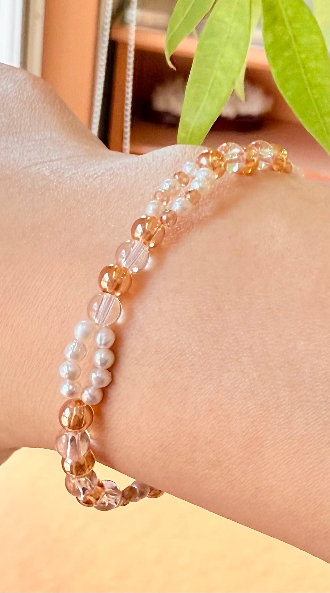 水晶4mm・パール3mm・ゴールデンオーラクォーツ4mm カット2mmブレスレット