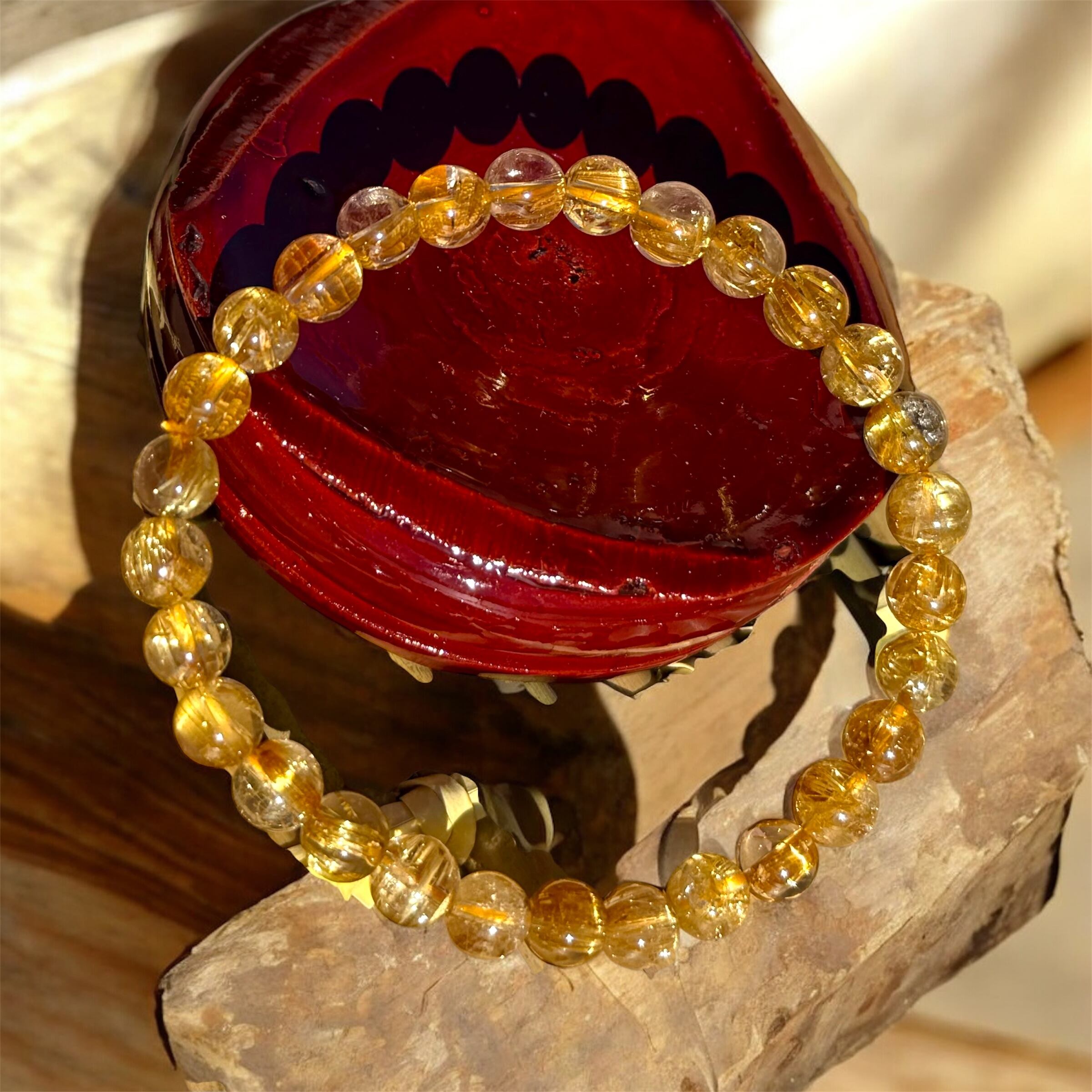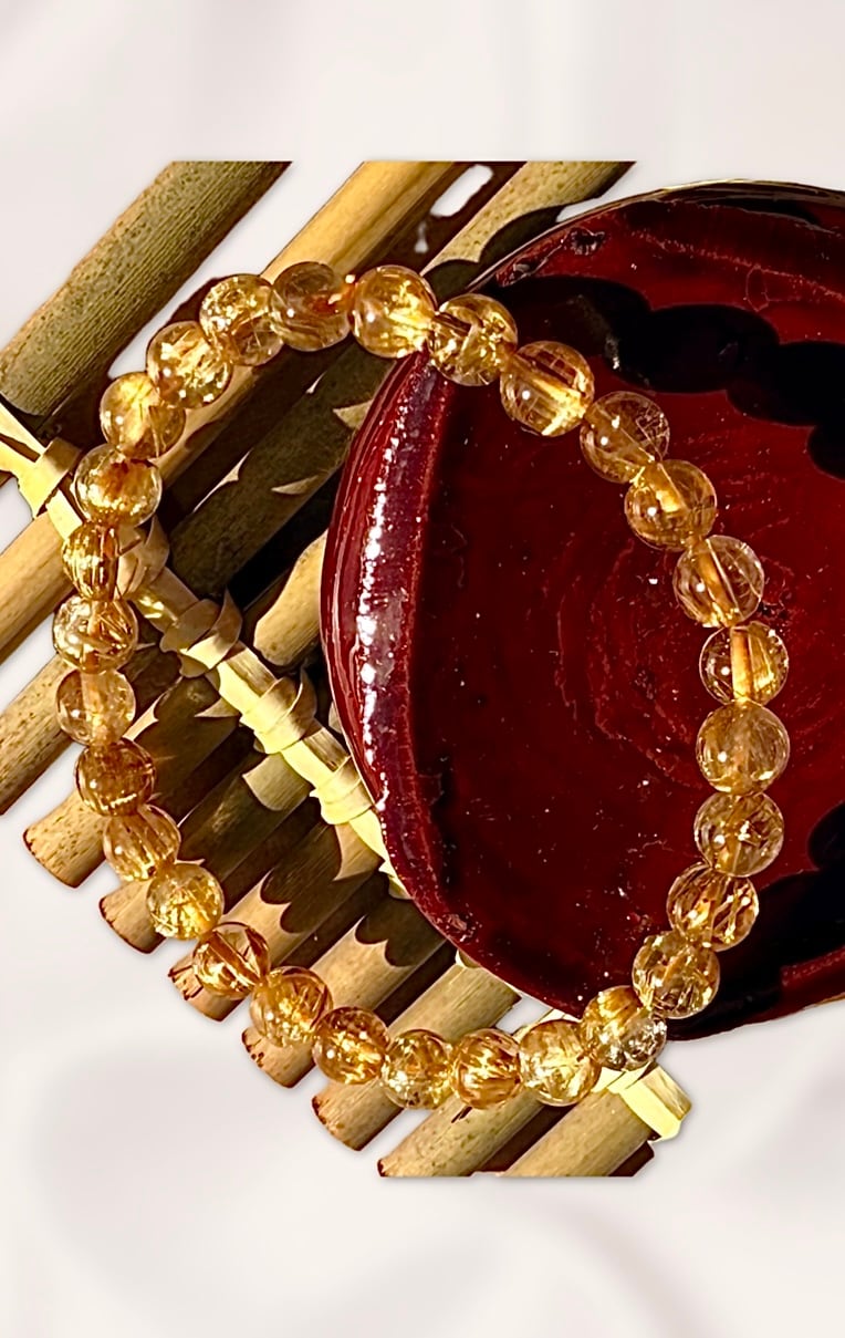 一粒一粒にしっかりとルチルが入り、光を受けるたびに前向きなエネルギーを感じられるブレスレットです。