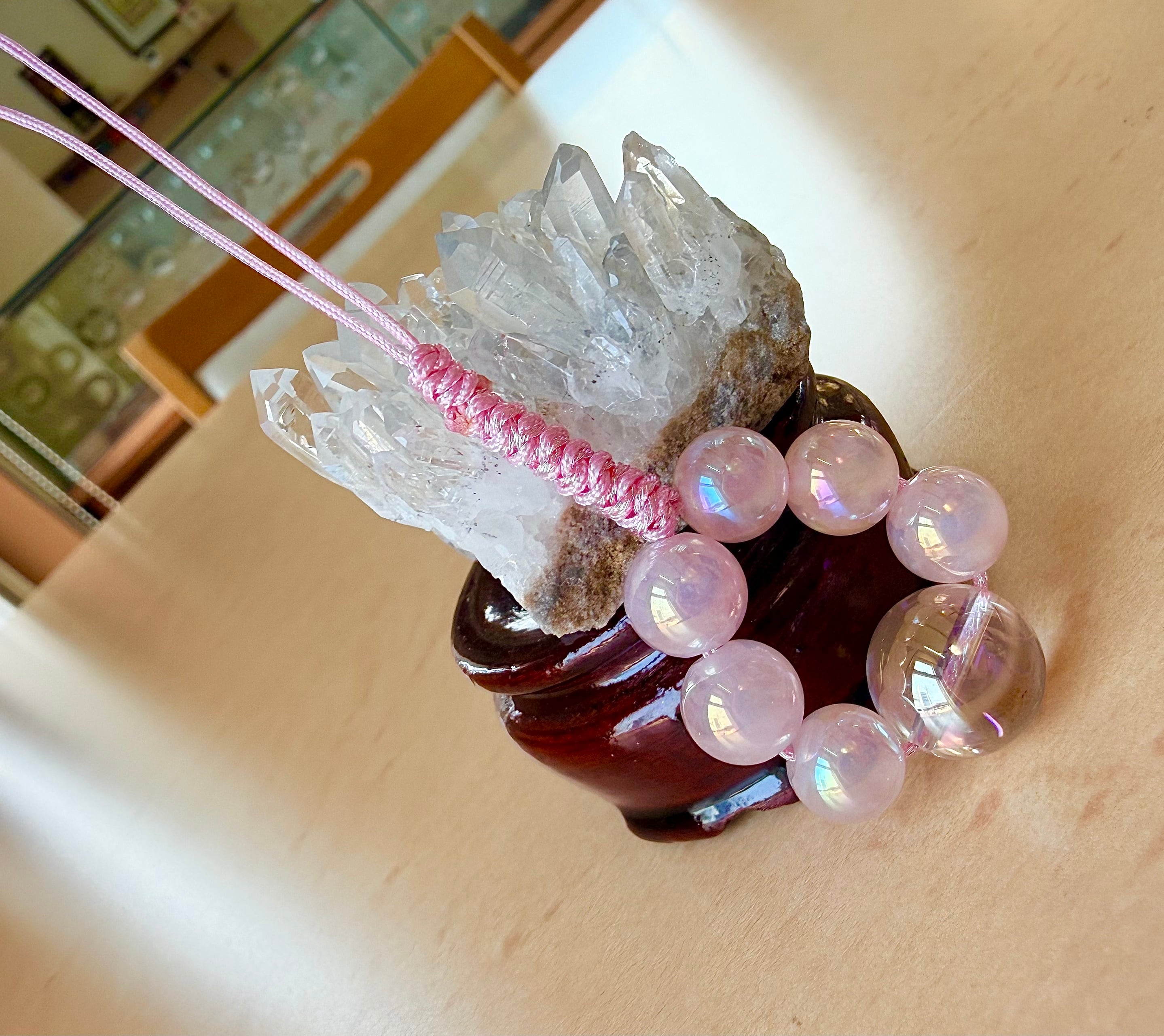 ピンクオーラクォーツは恋愛運を高め、愛される魅力を引き出し、心を穏やかに整える石。