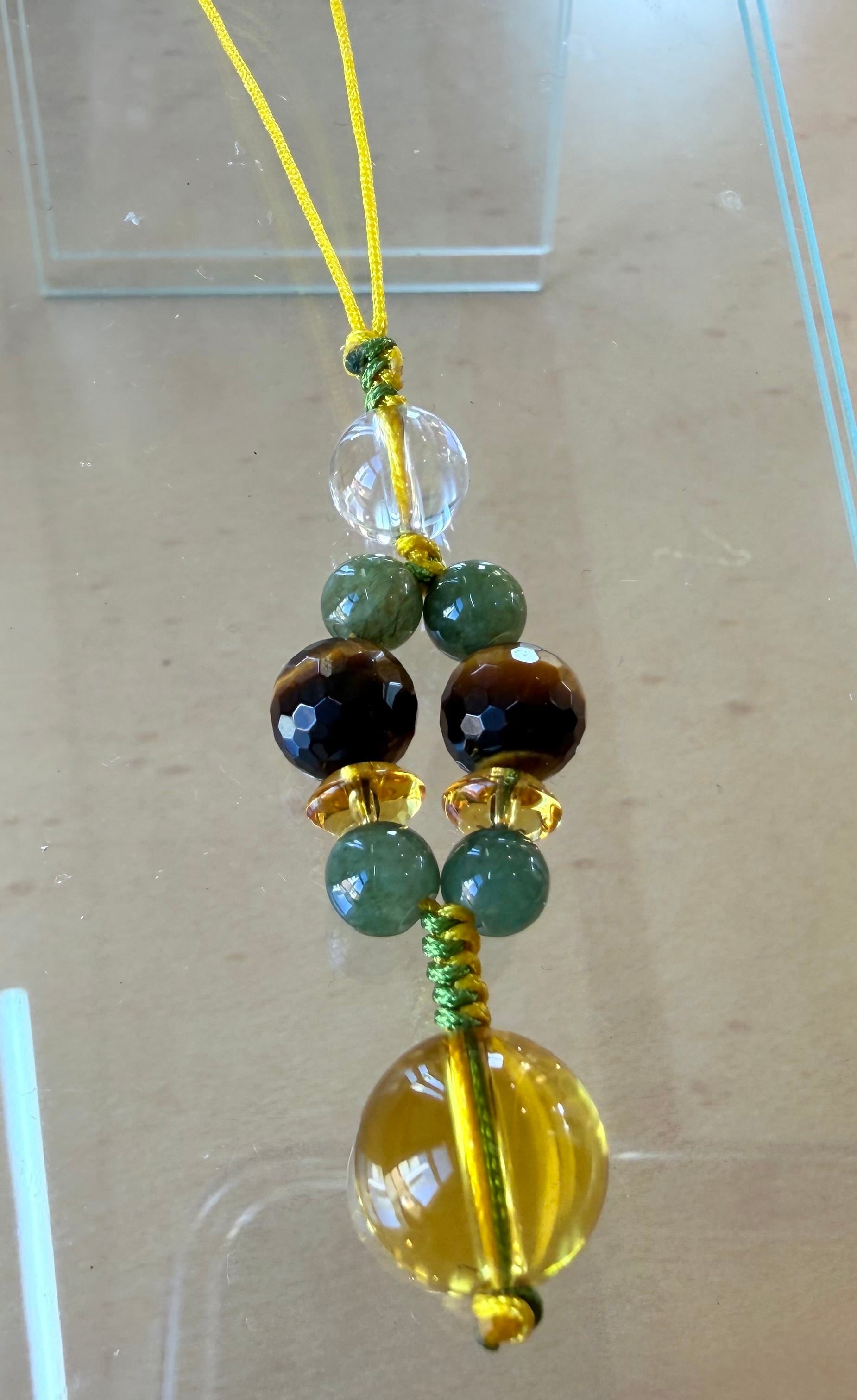 翠と金の開運守り編みストラップ