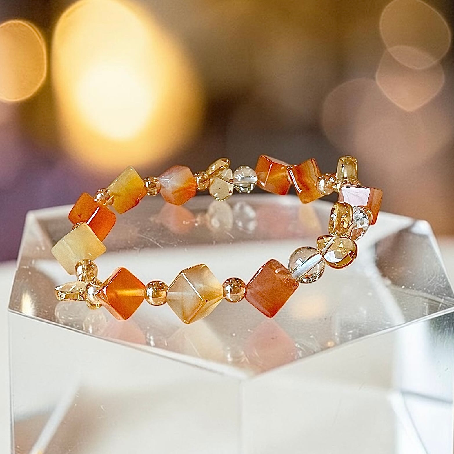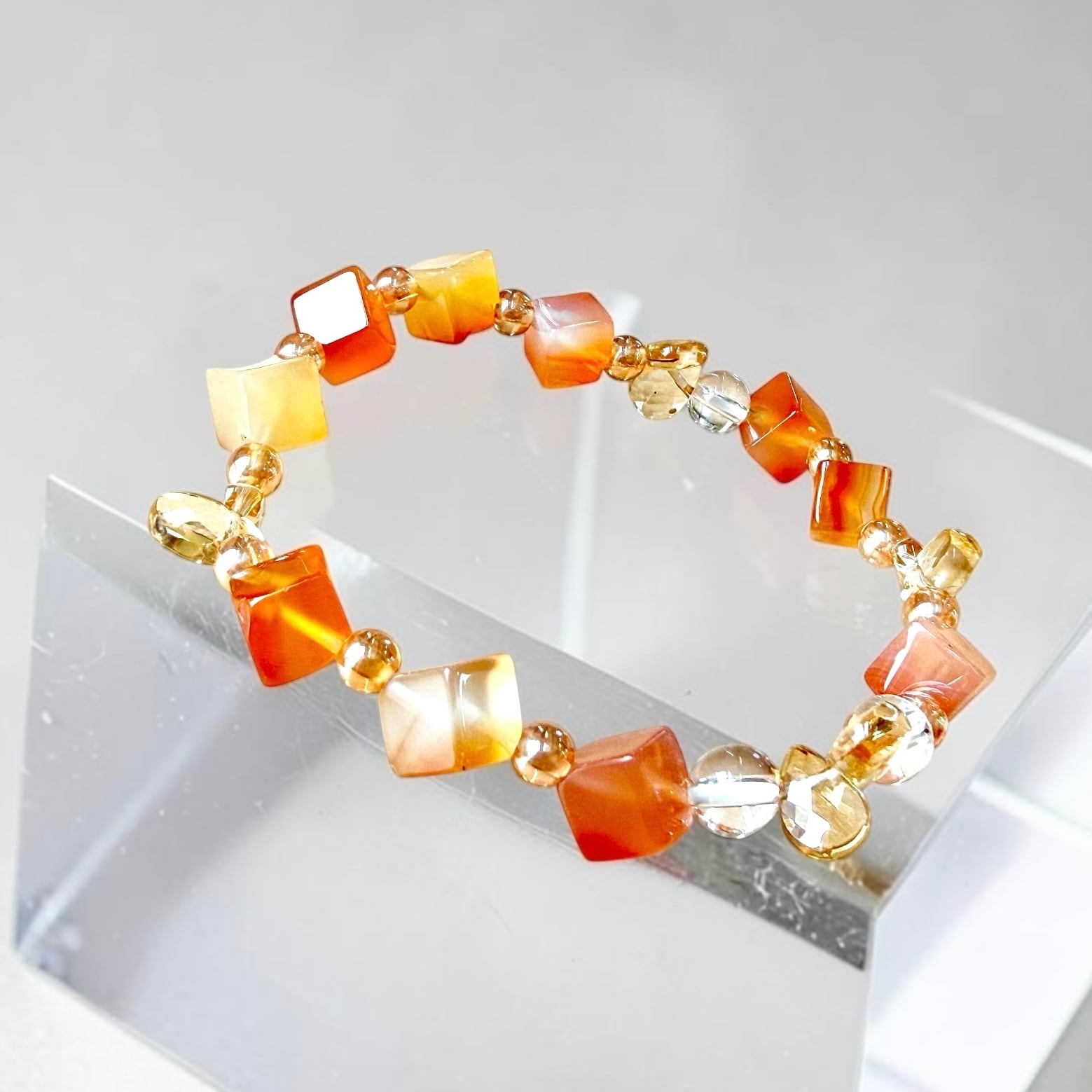 温かみのあるオレンジカラーが魅力の、元気と運気を引き寄せるブレスレットです。