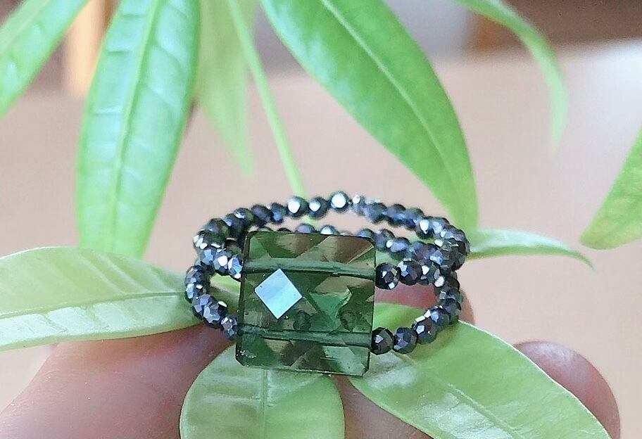 石:カットモルダバイト10mm、カットテラヘルツ2mm