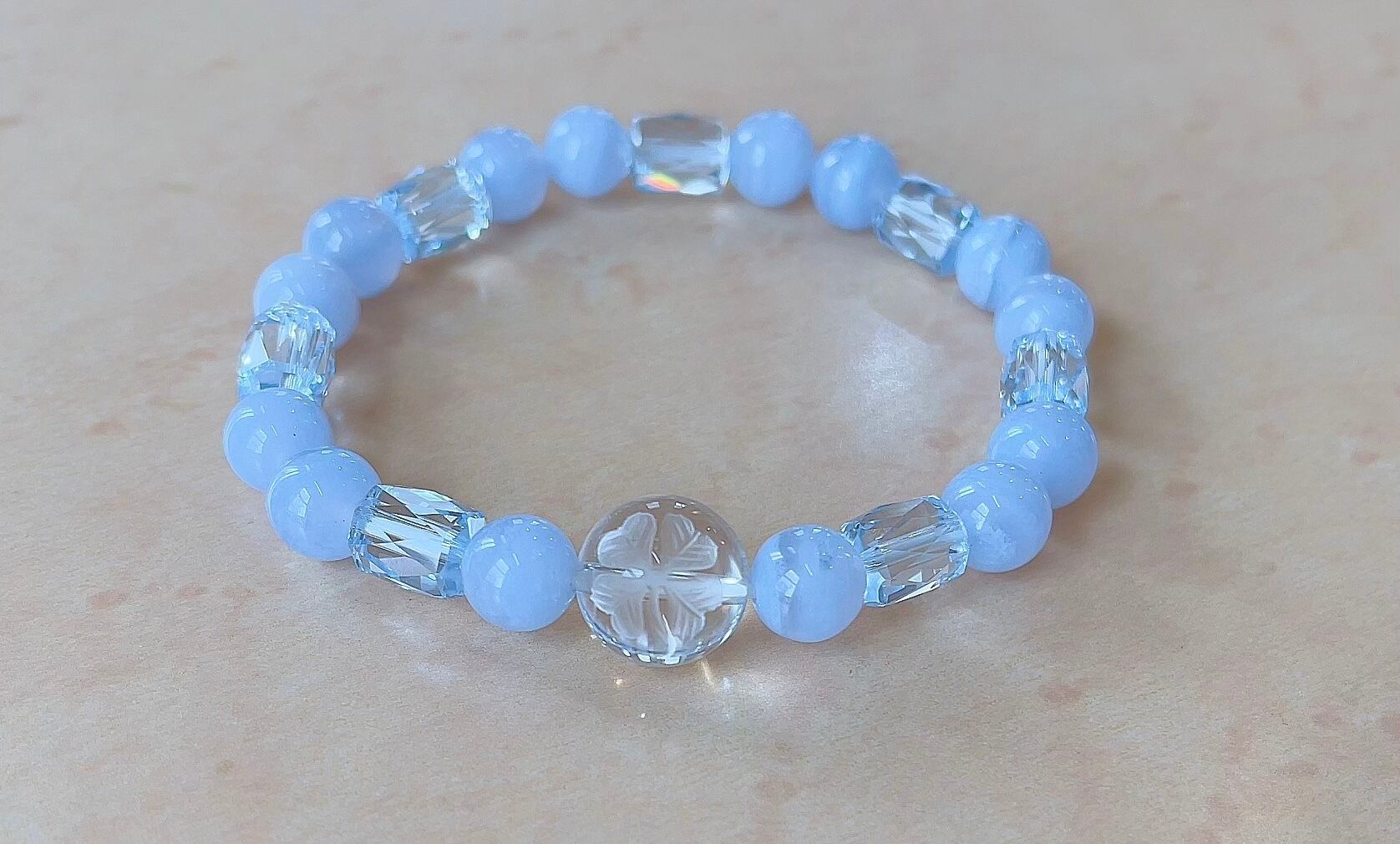 水晶四つ葉クローバー、トパーズ、ブルーレースアゲート