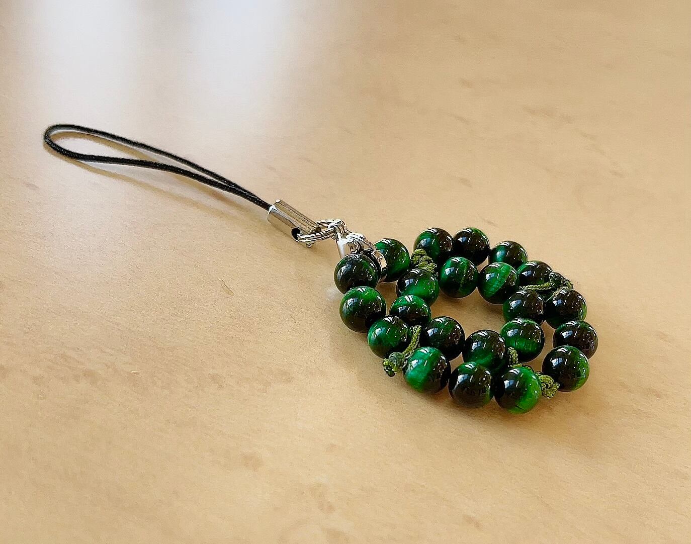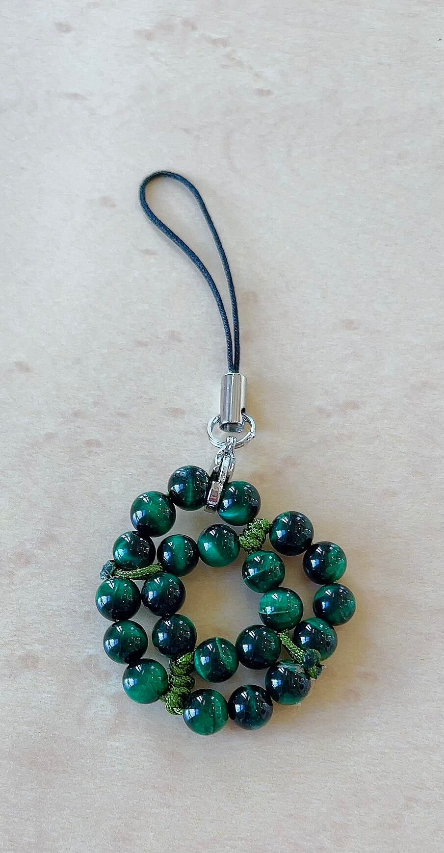 編みグリーンタイガーアイストラップ