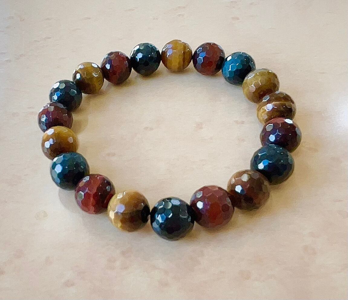 石:カットタイガーアイ三色(ブルータイガーアイ、レッドタイガーアイ、茶色タイガーアイ)10mm