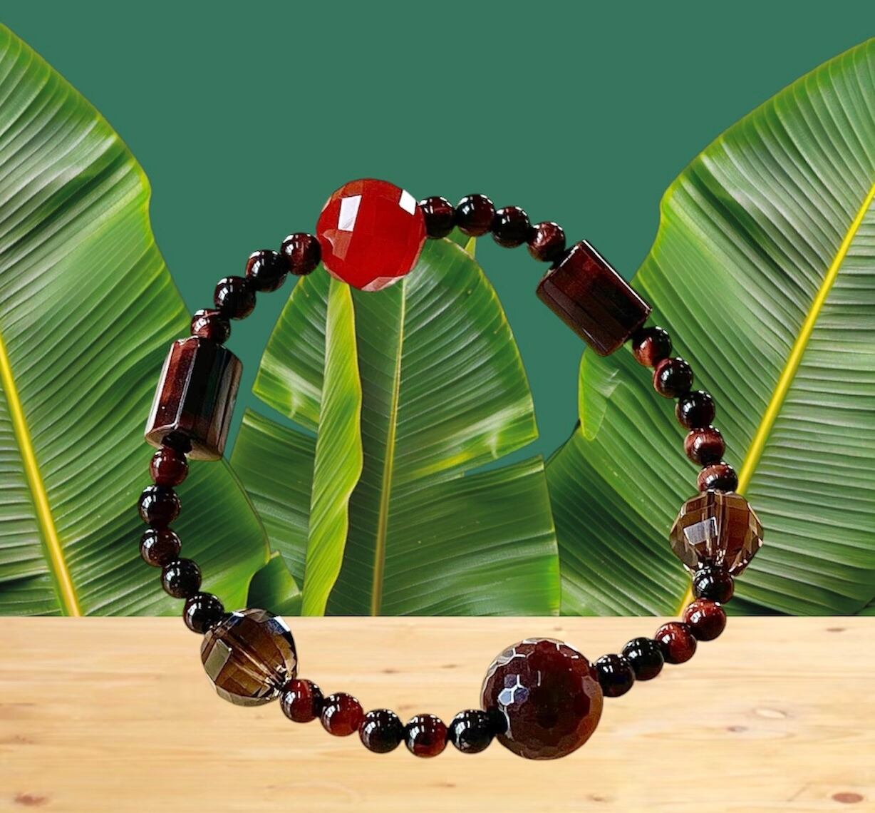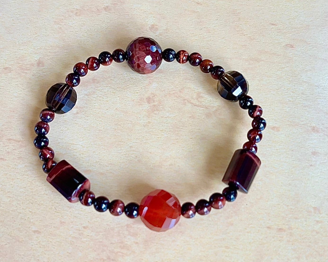 レッドタイガーアイ、赤瑪瑙、高品質スモーキークォーツブレス