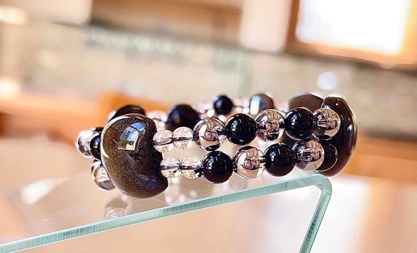 オブシディアン、オニキス、テラヘルツ、トルマリン二輪ブレス